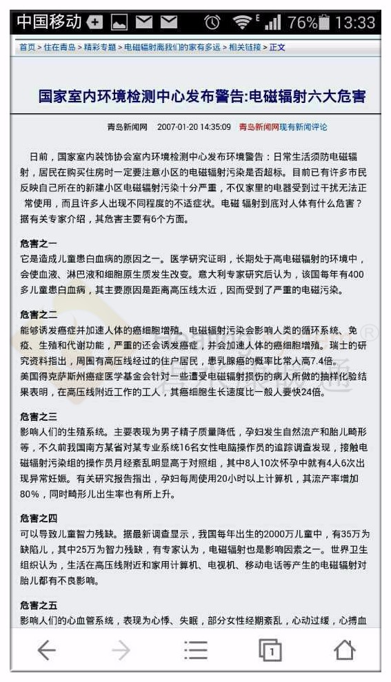 “青島新聞網(wǎng)”原文:電磁輻射六大危害↓
